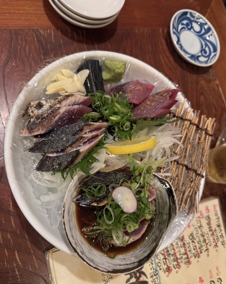 朝9時から全力で動き回ったので、夜は「カツオのタタキ」のご褒美です。
